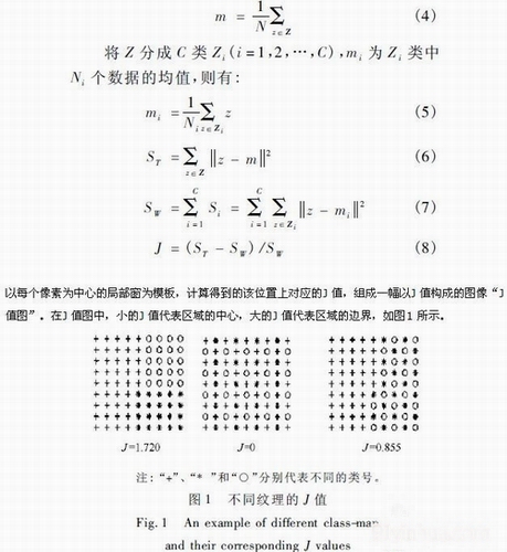 【集萃網(wǎng)觀察】隨著機(jī)器視覺技術(shù)在紡織行業(yè)的應(yīng)用,采用機(jī)器視覺方法來檢測(cè)紡織品印花圖像的印花精度已受到人們的重視,因此選擇合適、精確的圖像分割方法顯得尤為重要。在印花中各套色之間的對(duì)花精度是一個(gè)重要的指標(biāo),它不僅直接影響印花產(chǎn)品的質(zhì)量,也會(huì)限制車速等技術(shù)參數(shù)。在生產(chǎn)過程中,由于受到隨機(jī)干擾因素的影響,不可避免地出現(xiàn)“錯(cuò)花”、“跑花”現(xiàn)象。目前生產(chǎn)中主要是依靠人工目測(cè)進(jìn)行對(duì)花精度的檢測(cè)。 目前,針對(duì)紡織品印花圖像的分割,大部分是基于顏色聚類的方法來實(shí)現(xiàn)的,例如mean-shift[1]算法,K-mean 聚類[2]等。其特點(diǎn)是:只考慮到顏色的信息,對(duì)空間的信息考慮較少;在紋理較為明顯的情況下,分割效果不理想。JSEG[3]是Deng 等提出的一種同時(shí)考慮了圖像的顏色信息和空間信息的彩色圖像分割[4 - 5]的方法。該方法通過測(cè)試一個(gè)給定顏色紋理模板的同質(zhì)性來完成對(duì)圖像的分割,它主要應(yīng)用于對(duì)視頻圖像[6]的分析、航拍圖像的分割[7],在紋理分析[8]上也取得了比較好的效果。目前尚沒有將該算法應(yīng)用于紡織品印花圖像處理方面的報(bào)道。本文在機(jī)器視覺應(yīng)用于紡織品印花精度檢測(cè)的前提下,針對(duì)具有明顯紋理的紡織品印花圖像,使用 JSEG 算法對(duì)圖像進(jìn)行分割。【紡織品數(shù)碼噴墨印花墨水和四分色印花染料的研究】 1 紡織品印花圖像的分割 JSEG 是一種基于顏色和空間紋理信息的區(qū)域分割方法,主要包括顏色量化和空間分割。 1. 1 顏色量化 首先,將圖像的顏色空間轉(zhuǎn)換為L(zhǎng)UV 顏色空間。該空間不僅符合人類視覺的均勻與感知特性,而且可以用歐氏距離來衡量不同顏色之間的相似程度,有利于顏色的量化和描述。 其次,采用PGF( Peer Group Filtering) 算法[9]對(duì)圖像進(jìn)行平滑、去噪,在保留邊緣信息的同時(shí)去除顆粒噪聲的影響,使圖像的區(qū)域同一性更加顯著。定義: W × W 窗中心點(diǎn)x0( n) 的同等組為P ( n ) ={ xi( n) ,i = 0,1,…,m( n) - 1}。其中xi( n) 為窗內(nèi)的像素點(diǎn),m( n) 為窗內(nèi)數(shù)據(jù)點(diǎn)的個(gè)數(shù)。根據(jù)Fisher 判斷準(zhǔn)則得到相應(yīng)的m( n) 值,以適應(yīng)不同區(qū)域內(nèi)像素之間的差異。然后,在同等組的基礎(chǔ)上,利用各點(diǎn)的權(quán)重ωi ,計(jì)算出xnew ( n) 代替原來的中心點(diǎn)。