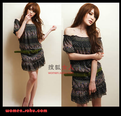 搭配建議:春季熱賣款的一字松緊領(lǐng)民族印花連身裙,簡單的幾何圖案營造出復(fù)古的浪漫氣息,飄逸的雪紡材質(zhì)散發(fā)著春日的浪漫情懷,一字松緊領(lǐng)的設(shè)計更是襯托出您的性感雙肩,時尚、性感、復(fù)古的完美結(jié)合,潮女達人們怎能錯過?