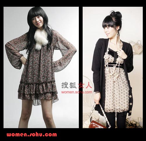 穿搭Tips:雪紡裙+針織衫
