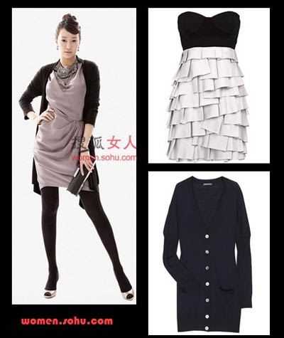 搭配Tips:皺褶連身裙+長(zhǎng)款針織衫