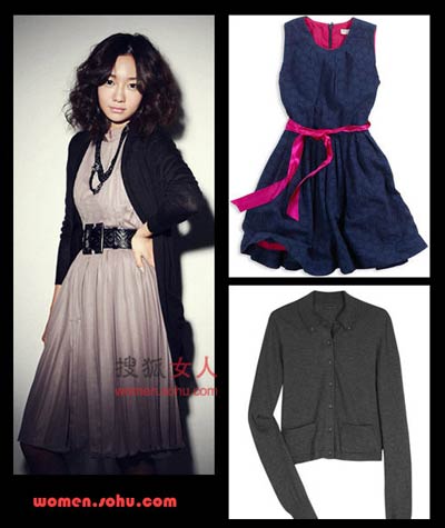 搭配Tips:收腰大擺連身裙+短款針織衫