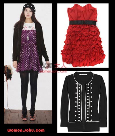 搭配Tips:抹胸式花邊蛋糕裙+黑色繡花針織衫
