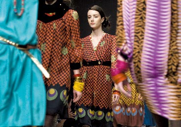 EleyKishimoto的兩位夫妻搭檔并不把自己完全看做服裝設(shè)計(jì)師,英國(guó)人MarkEley覺(jué)得自己屬于平面裝異者,他的家族在南威爾士一個(gè)小鎮(zhèn),就是當(dāng)?shù)厥来鷱臉I(yè)的印刷業(yè)內(nèi)人士,從13歲起跟隨叔叔學(xué)習(xí)印刷,他對(duì)平面上色彩與紋樣的安排有著獨(dú)特的見(jiàn)解。