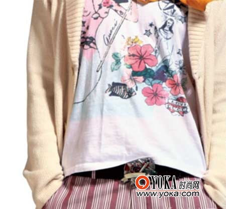 印花與條紋的組合需要一件素色外套作為搭配
