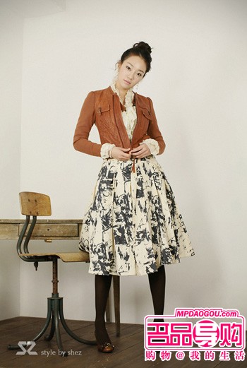 長(zhǎng)過(guò)膝蓋的印花裙子是粗腿MM的救星,潑墨的抽象畫比具體的花朵圖案更顯高雅,大大的傘狀和緊身短打的夾克將小蠻腰顯露無(wú)疑,還能有效遮掩小肚腩或臀部曲線,素雅端莊。和夾克風(fēng)格上的強(qiáng)烈碰撞,更是讓人過(guò)目不忘。