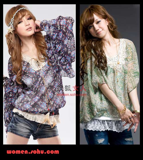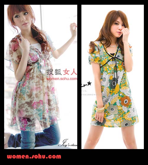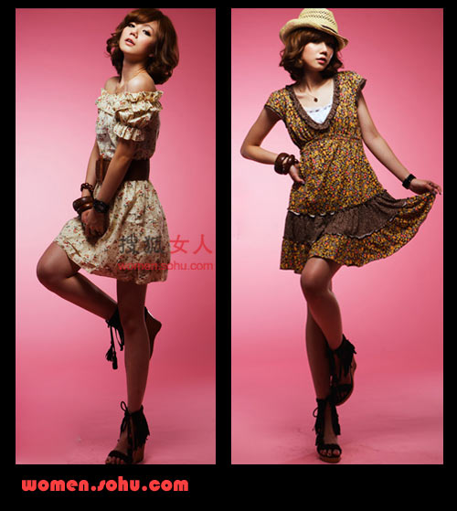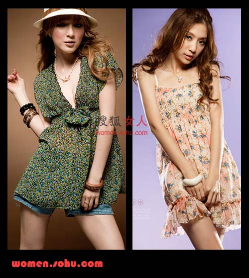 小碎花很多人都覺(jué)得“小孩子氣”,但是也可以有另一種情調(diào):小家碧玉。雪紡和印花結(jié)合起來(lái),配合上粉嫩的色彩和荷葉邊、泡泡袖的修飾,甜美可人的MM是絕對(duì)不能少了這款的。吊頸式的印花娃娃衫,與白T疊穿,不僅令上身色彩更跳躍還豐富了整體的色調(diào),就算沒(méi)有去度假,在水泥森林中也享受了度假的心情。不僅是度假時(shí)的選擇,在日常裝扮中搭配牛仔褲也可以嬌艷脫俗。