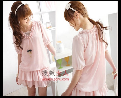 時尚解析:洋溢著甜美淑女氣息的荷葉V領五分袖雪紡洋裝,精致可愛的荷葉滾邊V領設計,從視覺上營造出甜美浪漫的氛圍,同時還能讓您的臉型看上去更加小巧迷人;蓬蓬裙的下擺設計,賦予這款洋裝一絲動感活潑韻味,無論是單穿或是搭配七分牛仔褲,都亮麗有型,是喜歡日系裝扮風格的女孩們初夏時節(jié)的必敗單品喔!