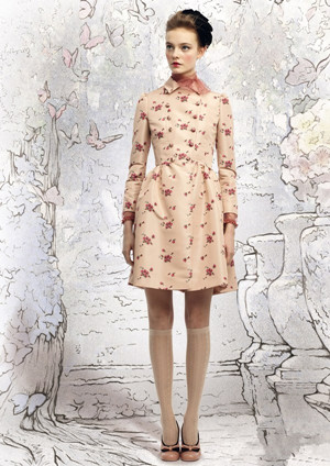 這華麗而帶點神秘氣息的印花襯托得人更加艷麗迷人,拼布式袖子又能給人以禮裙的端莊優(yōu)雅感,因此適穿于任何較為正式的場合。