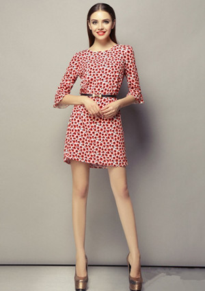 艷麗的小碎花配上優(yōu)雅的款型打造甜美淑女范,小圓領充滿了親和力,也凸顯頸部的優(yōu)雅。A字型下擺襯托得腰姿格外纖細。$$分頁$$