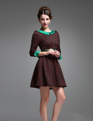 滿裙的小櫻桃越看越覺秀色可餐,撞色的小圓領又充滿了復古宮廷裝的味道,與袖口的撞色設計遙相呼應,整體非常優(yōu)雅。