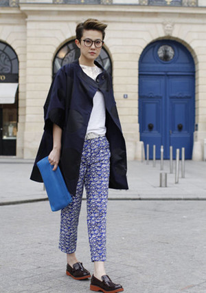 劉力揚(yáng)現(xiàn)身時裝周。奔赴Acne秀場,身穿津森千里(Tsumori Chisato) 2013度假系列的花花褲,搭配圓頭黑皮鞋,大走復(fù)古風(fēng)。$$分頁$$