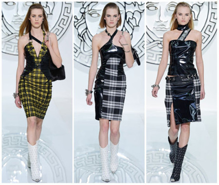 這樣說似乎有些牽強;仡櫭滋m時裝周,多娜泰拉-范思哲通過一系列充滿性誘惑的造型為觀眾呈上了一場朋克派對。在這些造型中,你亦能看到蘇格蘭元素:格紋和降低腰線的蘇格蘭短裙,兩條開透露出不少性感的腿部肌膚。