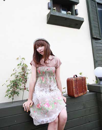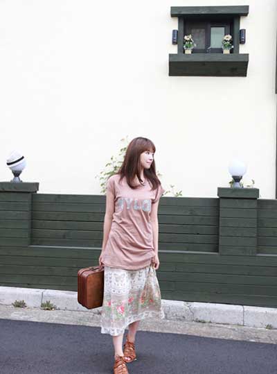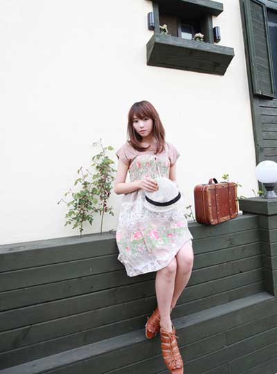 穿著花裙去踏青,小小旅行箱如影隨形