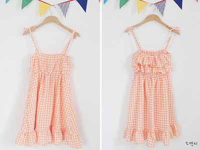 棉質(zhì)桔紅格子面料吊帶裙,清新甜美