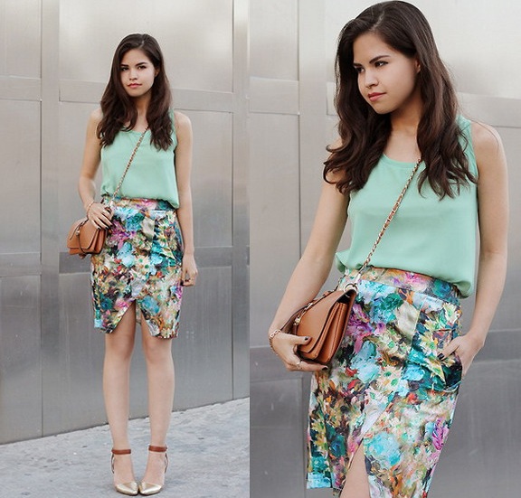 優(yōu)雅的都市女風(fēng)范在水藍(lán)色雪紡衫的映襯下顯得格外溫婉,再以印花半身裙作為搭配增添了裝扮的亮點(diǎn)。裙擺前衩的設(shè)計(jì)更顯雙腿修長(zhǎng),同時(shí)又添加了裝扮的設(shè)計(jì)感。同色系的鏈條包與高跟鞋呼應(yīng),提升造型完整度。