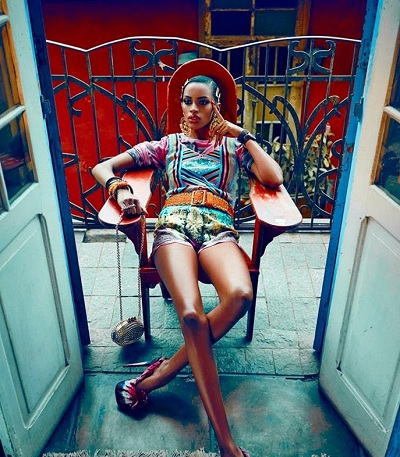 黑珍珠超模演繹印花風(fēng)情