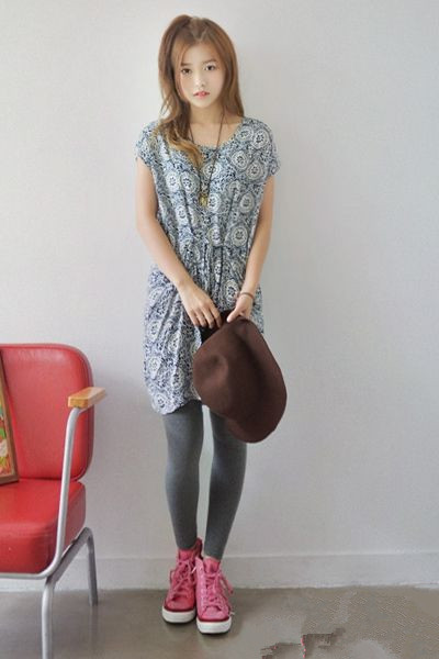 波普印花擺脫俗艷,散發(fā)清新氣質(zhì)。腰間抽繩調(diào)節(jié)更方便,更具人性化。打底褲既可修飾腿部線條,又可避免走光的尷尬。枚紅色布鞋為整體造型增色不少。