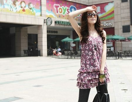 時(shí)尚點(diǎn)評(píng):粉紫色系的印花裙搭配黑色的打底褲,輕松綻放美式復(fù)古風(fēng)情,再搭配一款大大的太陽(yáng)眼鏡時(shí)尚與帥氣的感覺倍增,大墨鏡和印花裝搭配復(fù)古味道大大的手拎包裝點(diǎn)的你氣質(zhì)尤佳,是散發(fā)優(yōu)雅名媛度假風(fēng)情的關(guān)鍵。