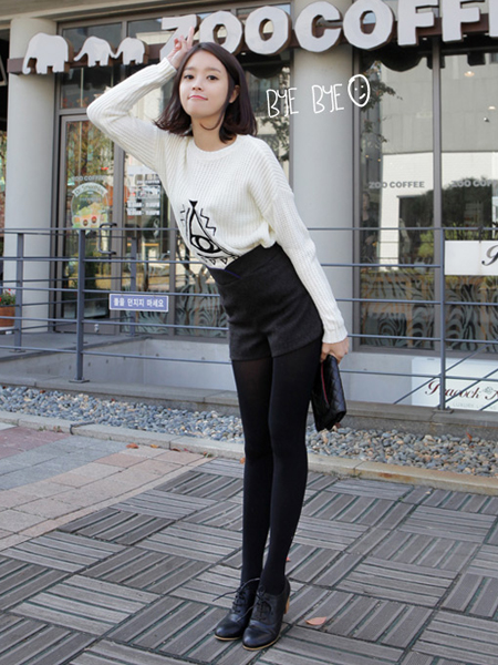 獨(dú)特圖案的針織T恤,版型不修身,簡單自然的款式,下搭高腰休閑短褲和高跟鞋,拉長下身比例。