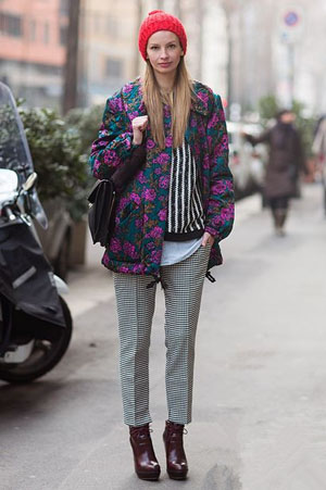【集萃網(wǎng)觀察】印花雖不是秋冬季最流行的時尚元素,但也能給沉悶的秋冬錦上添花。你不必像春夏季一樣穿的花枝招展,只需小面積的印花,或是一件印花單品就可以讓全身靚麗起來。來看看潮人的示范吧。