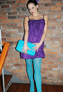 紫色蝴蝶吊帶裙搭配湖藍(lán)色鞋,包和配飾。兩種對比強(qiáng)烈的顏色效果搭配不錯(cuò)。頭上沿用紫色花朵頭飾,細(xì)心裝扮下赴約一定高調(diào)精彩。那深深淺淺的紫色,總是驚艷又神秘。