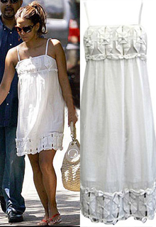 黑皮膚的女孩兒更要穿白色的服裝,依照色彩搭配的原理,色差越大視覺效果越好。白色吊帶裙造型雖然簡單,但在胸口和裙擺處的立體褶皺裝飾卻很有設(shè)計(jì)感。