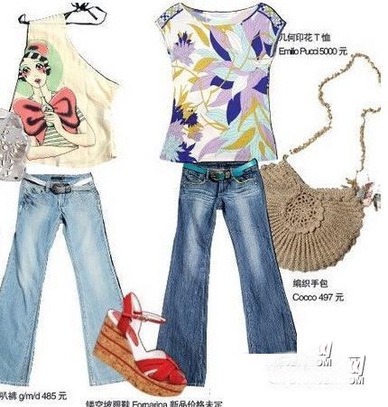 印花上衣+喇叭褲是夏日最為洋溢的搭配,辦公室中選擇抹胸印花上衣外加素色短款小西服,露出一絲性感印花,結(jié)束每天乏味的職場生活。外出旅游可以搭配吊帶印花T恤,散發(fā)出誘人的小清新。當然今年大熱的斜肩式印花T恤也不容忽視,不過千萬不要選擇外搭馬甲或是無袖小西裝,這樣繁復的搭配會使你看起來多此一舉。適合佩戴寬大耳墜或是手鐲等飾品。
