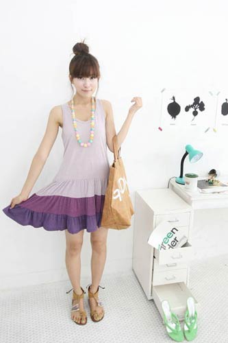 時尚穿衣搭配亮點:紫色系漸變拼接背心裙,舒適又美麗的夏天好裝扮。