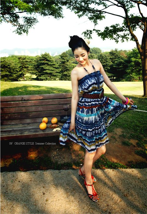 時尚評論:海島心情,濃郁的色彩映襯在抹胸的連衣裙想要不被人群淹沒都非常的難了!好似扎染一樣的圖案和色彩既有特色又具有異域色彩!白皙的皮膚和性感的鎖骨在陽光的映襯下,熱力十足!