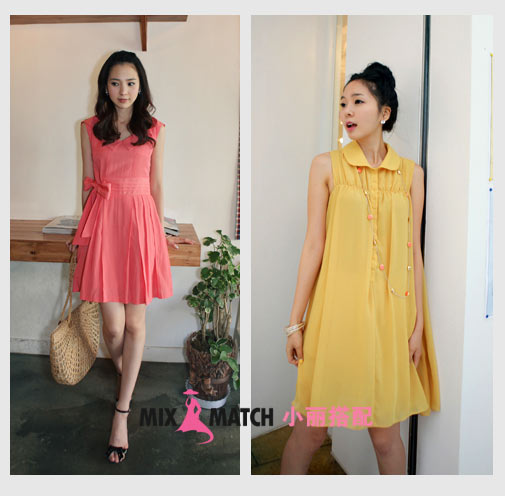 時尚解析:明艷的色彩一直是物質(zhì)女郎最寵愛的色彩,在本季中紅色亦擁有最強勁的話語權(quán),明艷粉調(diào)更是女人們永遠的最愛?钍胶啙嵈蠓,色彩明亮純凈的桃粉色適合各種膚色的MM穿著。黃色面料讓優(yōu)雅魅力低調(diào)綻放。H型直裁的款式藏起上半身贅肉,超大裝飾項鏈轉(zhuǎn)移目光,吸引視線足夠搶眼。