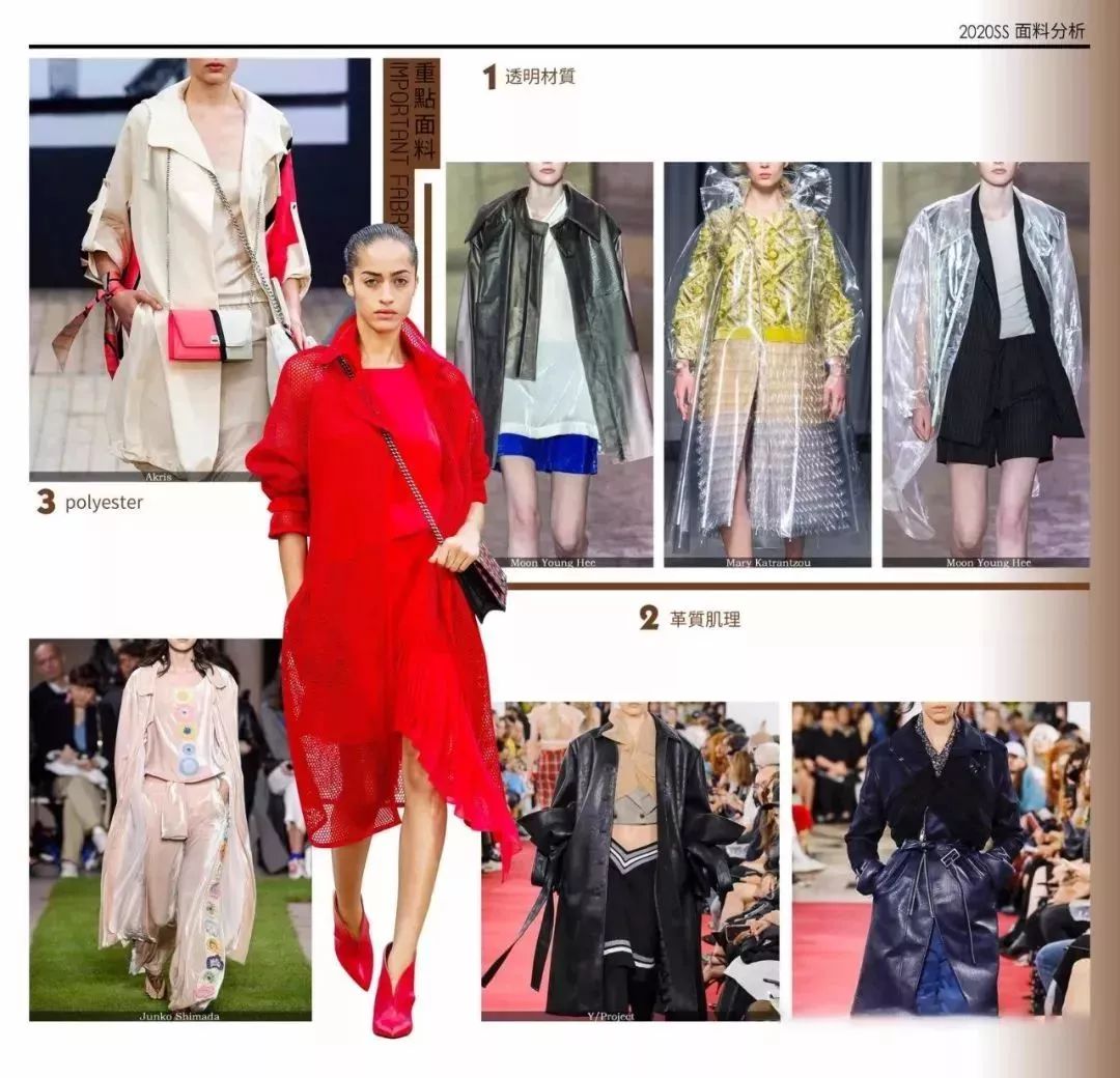 透明材質(zhì)、可透視面料被大量運用,這些往年被運用在未來感時裝款式上的面料,賦予了設(shè)計新面貌。