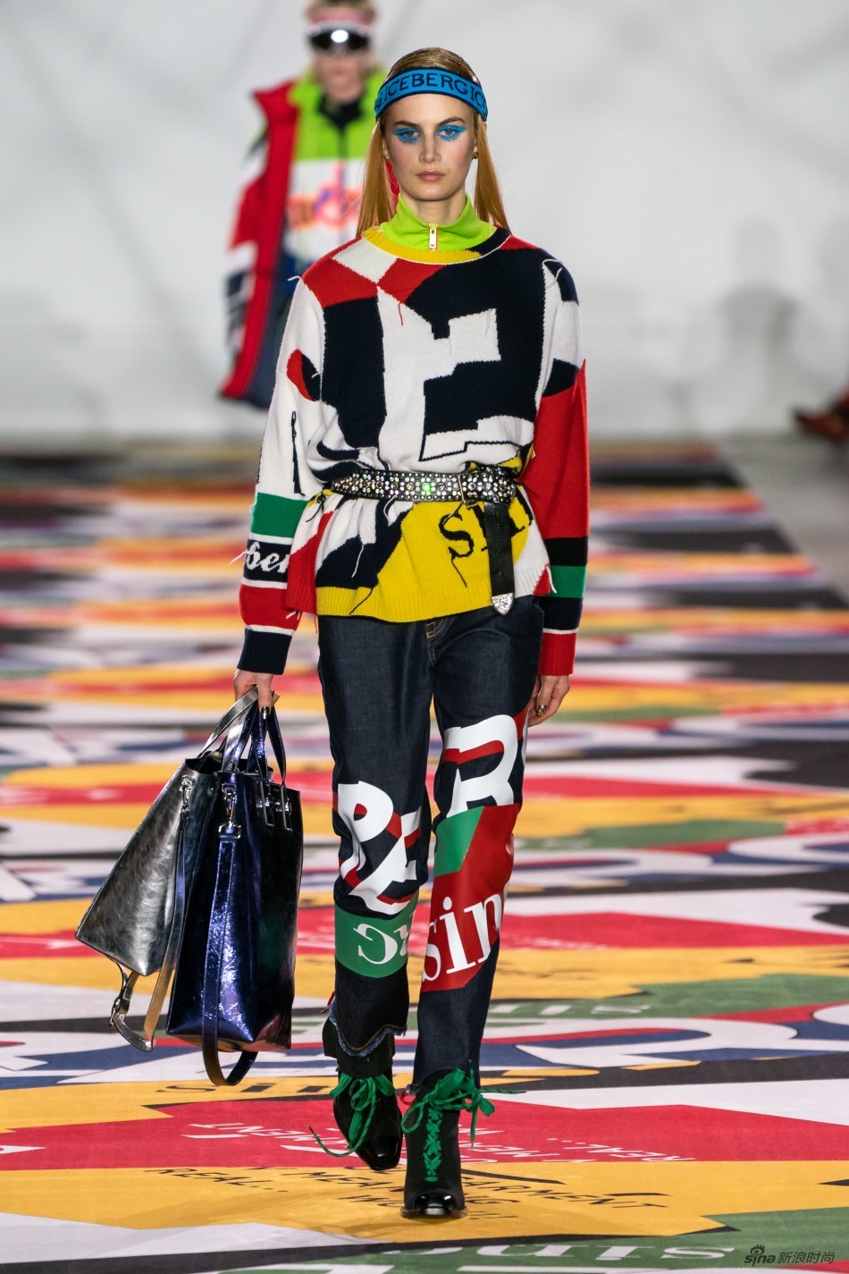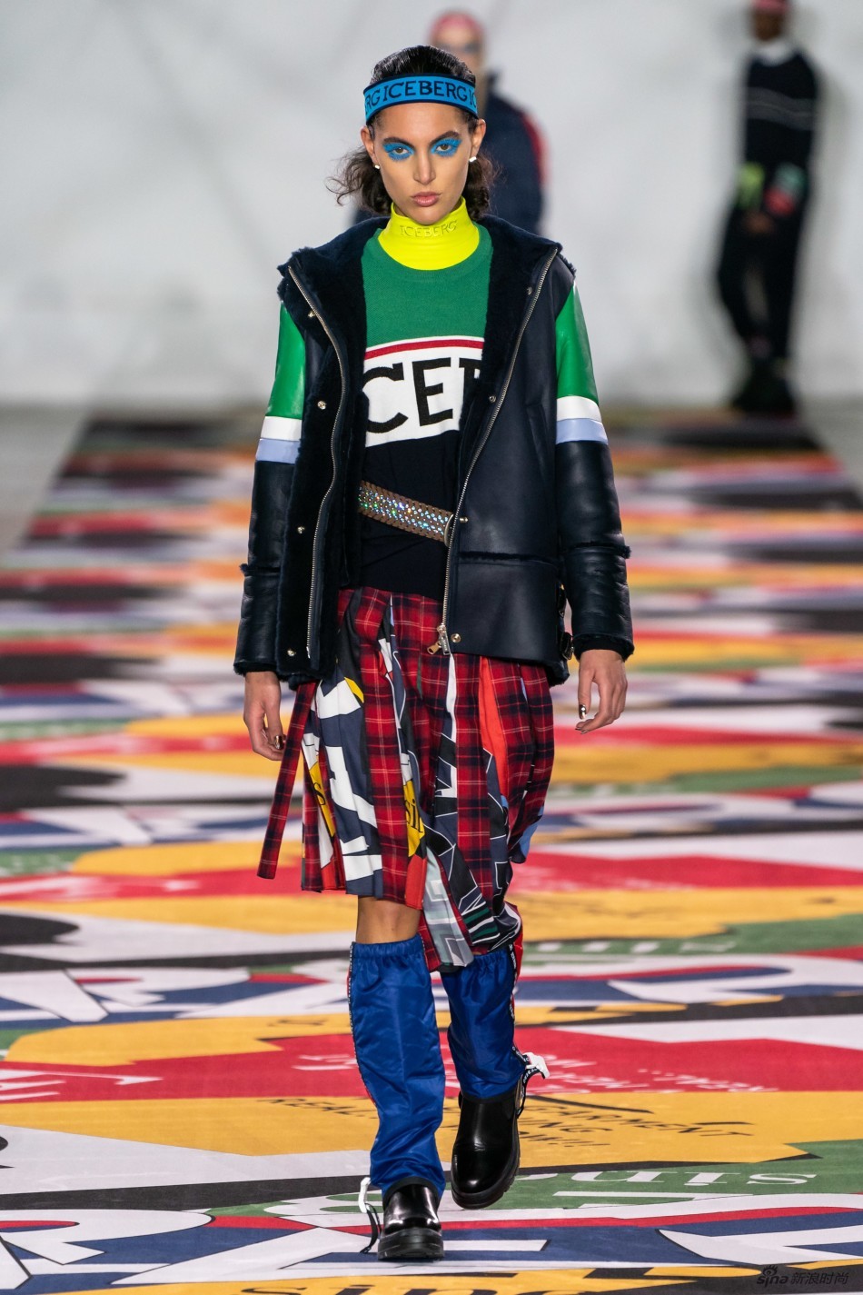 Iceberg延續(xù)了該品牌最擅長的運(yùn)動(dòng)風(fēng),大面積撞色和不規(guī)則拼接成為本季主流趨勢,玩趣紛亂的印花造型和豐富跳躍的色彩都令人十分驚喜。
