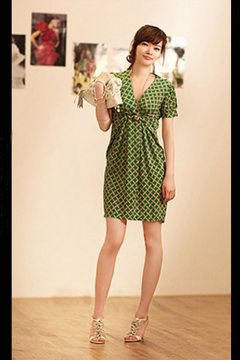 時(shí)尚解析:高腰線的V領(lǐng)印花連衣裙,腰線和領(lǐng)口設(shè)計(jì)融為一體,好似扭曲形成,性感的展現(xiàn)胸部曲線,扭曲形成的褶皺剛好遮蓋了小腹贅肉。