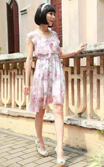 時(shí)尚解析:其實(shí)簡(jiǎn)單素雅造型的剪裁,也是呈現(xiàn)出年輕化的設(shè)計(jì),為了表現(xiàn)出女生的心境,整體的設(shè)計(jì)很輕松。淺色的碎花圖案讓你看上去更加纖瘦,適合年輕女孩穿著。