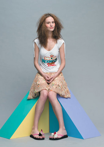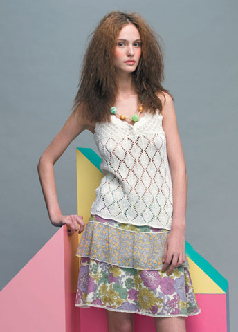 艷麗的針織貝殼衫帶出幾分頑皮氣息,白色印花裙流露鄰家女孩般的甜美氣質(zhì)