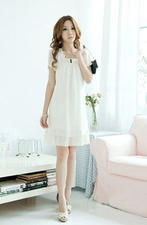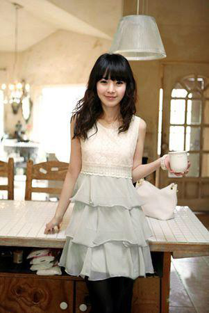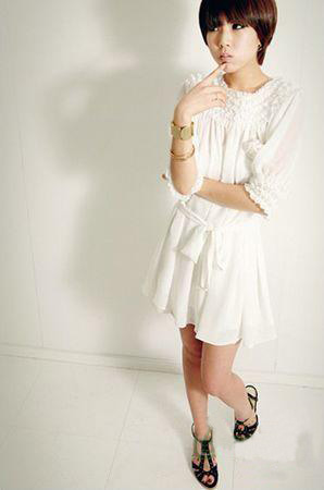 花邊白色連衣裙,在簡單之余充滿著女孩的甜美與細(xì)膩,搭配俏麗的短發(fā),十分漂亮。