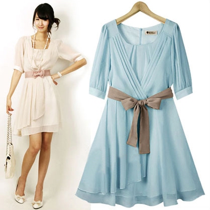 時(shí)尚解析:半袖雪紡連衣裙非常適合本季穿著,淡淡的粉色與飄逸的雪紡搭配,甜美可人,腰間蝴蝶結(jié)增添可愛氣息。