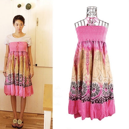 時(shí)尚解析:盛夏的印花抹胸連衣裙內(nèi)搭白色打底T恤,七夕約會(huì)裝扮簡單呈現(xiàn),胸部的松緊設(shè)計(jì)很好的包裹出女性柔美曲線。