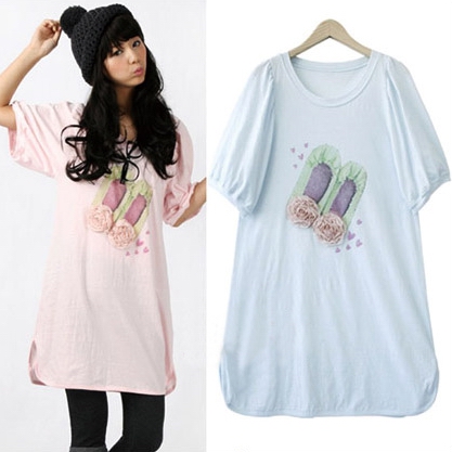 時(shí)尚解析:單純可愛的T恤款連衣裙,搭配黑絲襪加高筒靴,無比甜美,惹人憐愛,桃花定會(huì)朵朵開發(fā),胸前裝飾花朵成為點(diǎn)睛之筆。