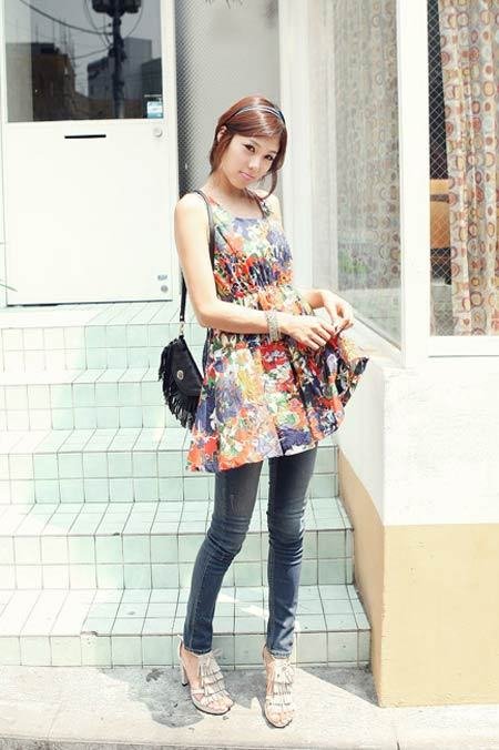 印花連衣裙不但可以單穿,搭配仔褲一樣可愛美麗。
