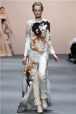 【集萃網(wǎng)觀察】迷幻肌理是 09秋冬的一大趨勢,而平面的復(fù)雜印花圖案是其中重要的組成部分。在印花圖案中,如同現(xiàn)代藝術(shù)的圖案是T臺(tái)上的一大亮點(diǎn),以往也曾出現(xiàn)藝術(shù)化的圖案,但都不曾如此抽象而超現(xiàn)實(shí)。