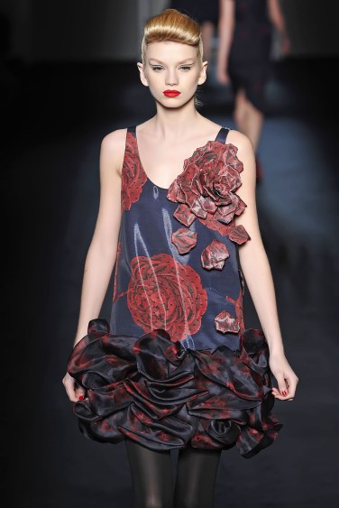 本季花卉的主流載體仍是連衣裙,相較春夏,連衣裙的裙擺短了不少,通過(guò)多片立裁,輕薄的衣身也顯得很挺括,因此在配飾的選擇上,應(yīng)配搭具有體塊感及光澤度的款式。