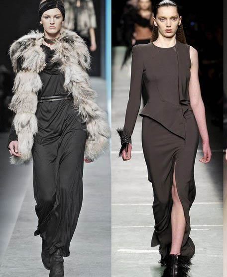關(guān)鍵面料:柔軟的人造棉針織面料、色丁軟緞、皮革、金屬色針織面料、表面粗糙的針織面料、奢華的羊毛、毛皮。