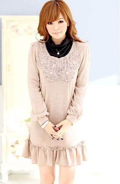 點評:還在為早晚的低溫而煩惱嗎?女人味十足的長袖針織連衣裙能夠穿出完美的氣質(zhì),同時將它穿出時尚感,淺色系很容易讓人對其產(chǎn)生好感,再加上褶皺裙擺更是展現(xiàn)小女人俏皮的一面,可愛氣息的名媛搭配就是這么簡單穿出。