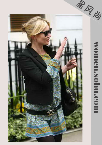 時尚解析:女王Kate Moss的民族圖案印花長T別具風(fēng)味。 低跨設(shè)計凸顯出美翹臀部,暗色規(guī)則印花很有復(fù)古意味,輕易襯托出不俗品位。