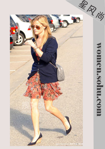 時尚解析:當(dāng)天天氣極好瑞茜神作層疊花裙青春洋溢,外套一件黑色針織開衫外套,斜背Chanel包包大展現(xiàn)淑女氣度。