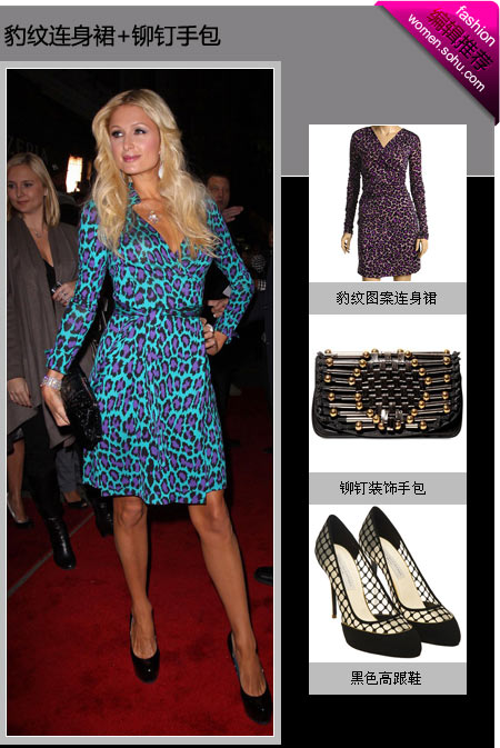 豹紋連身裙+鉚釘手包