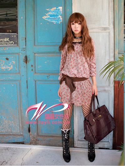 素雅小花與咖啡色腰帶營(yíng)造低調(diào)的個(gè)性張揚(yáng),在暖暖的春日,搭配上帥氣的網(wǎng)格褲襪和系帶靴,成功詮釋日系范兒。