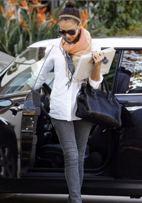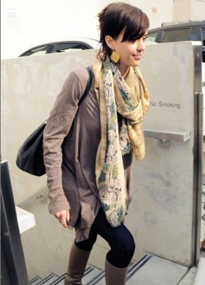 時(shí)尚解析:春日是繁花盛開的季節(jié),當(dāng)然少不了一條印花的圍巾。Kristin Cavallari選擇了一條中國風(fēng)紅花圍巾,除了保暖之外也為整款素雅裝扮增添畫龍點(diǎn)睛的效果,更添幾分田園氣息。