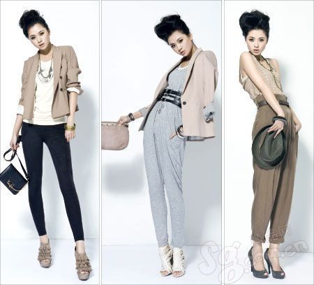 KEY WORDS 裸色西服+米色上衣+黑色緊身褲